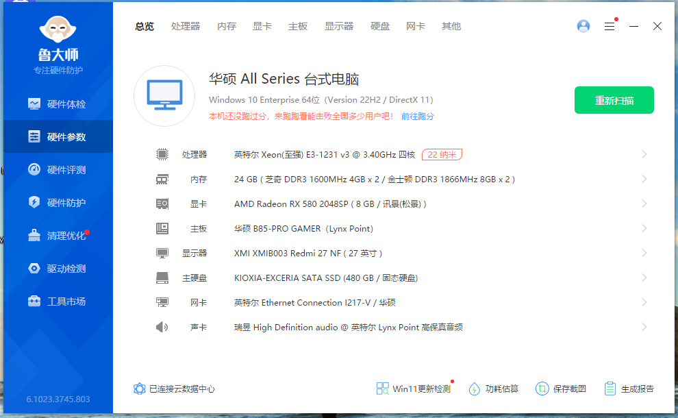 CPU:Xeon E3-1231 v3@3.4Ghz 内存:24G ddr3 1600MHz 显卡:AMD RX580 8G 硬盘:必须固态硬盘
